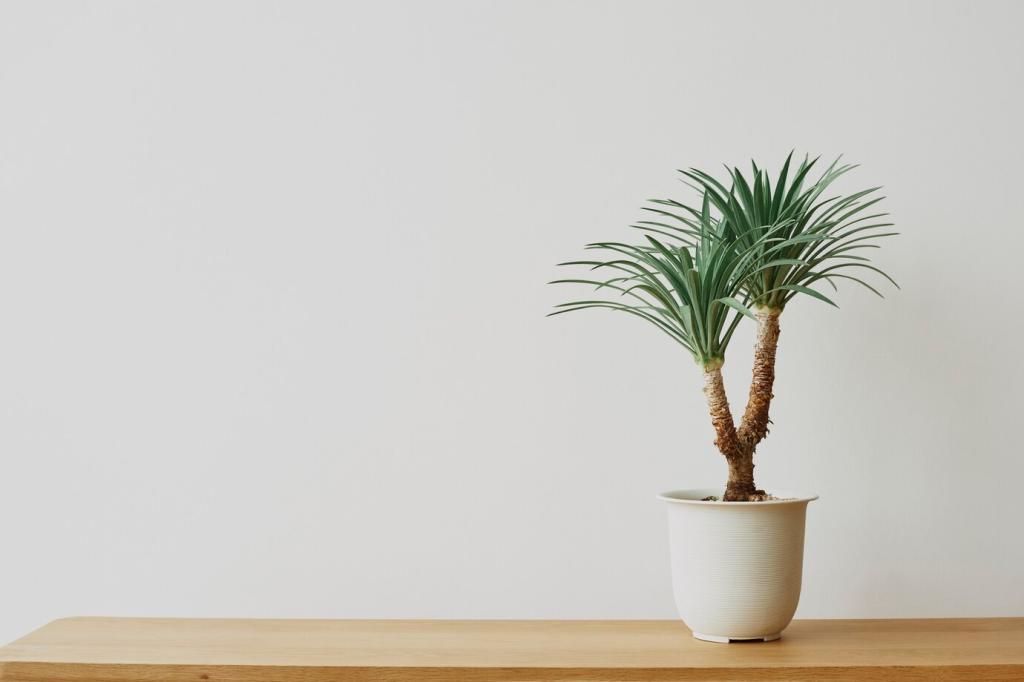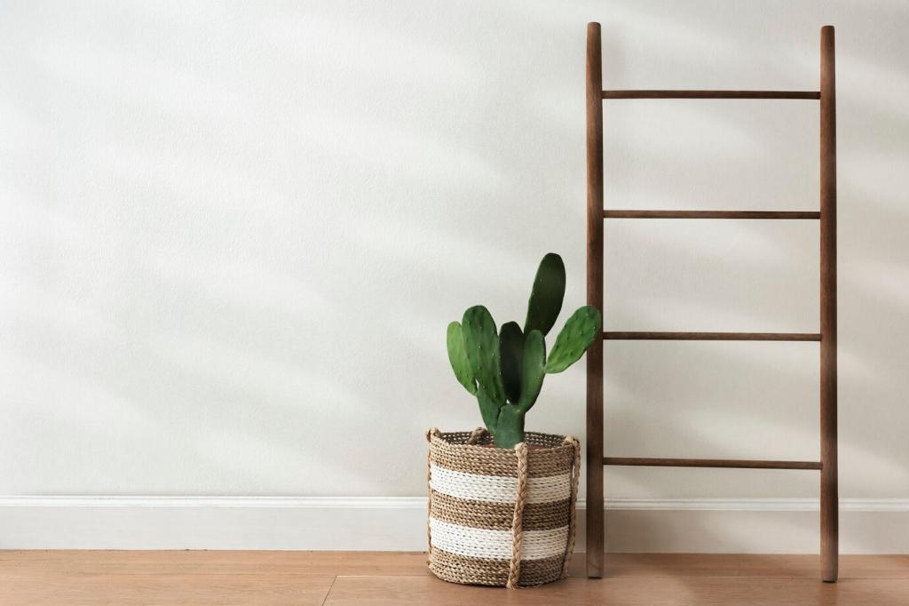 Nordfenster bieten weiches Licht, ideal für Farne und Efeutute; Südfenster liefern viel Energie für Kräuter und Sukkulenten. Prüfe täglich kurz die Lichtspur an der Wand und markiere mögliche Höhen für dein Pflanzmodul.