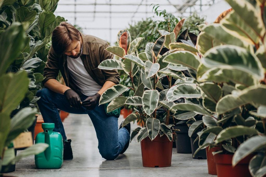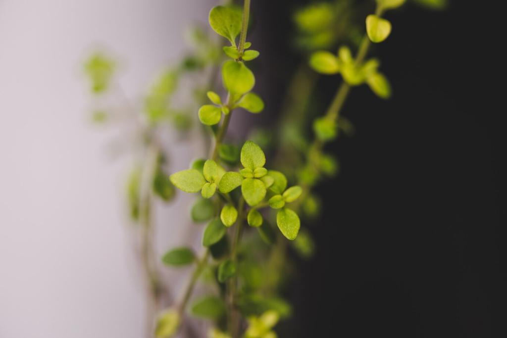 LED-Pflanzenlampen mit speziellem Vollspektrum kompensieren dunkle Ecken. Zeitgesteuerte Phasen simulieren Morgen und Abend, ohne die Wand zu überhitzen. Verrate uns, welche Lampen du nutzt, und wir vergleichen gemeinsam Ergebnisse.